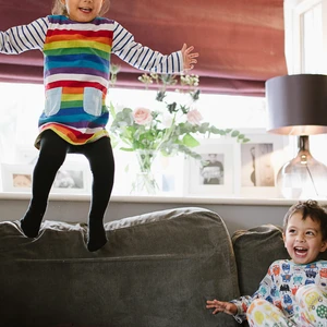 “Beautiful use of exposure triangle in nearly every photo! There were only a few that appeared to have highlights that are too bright and detract from the image. Some examples are, Girl in rainbow outfit jumping on gray sofa with boy on couch I think the whites are too bright and vertical image of couple with toddler in rose colored sweater walking on leaves; leaves are really distracting and backlight overpowering. Toddlers in diapers, with toes only showing on a table with pictures around them (black and white). Overall you handle challenging light very, very well and your exposure choices add to the frame.”